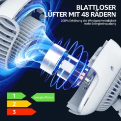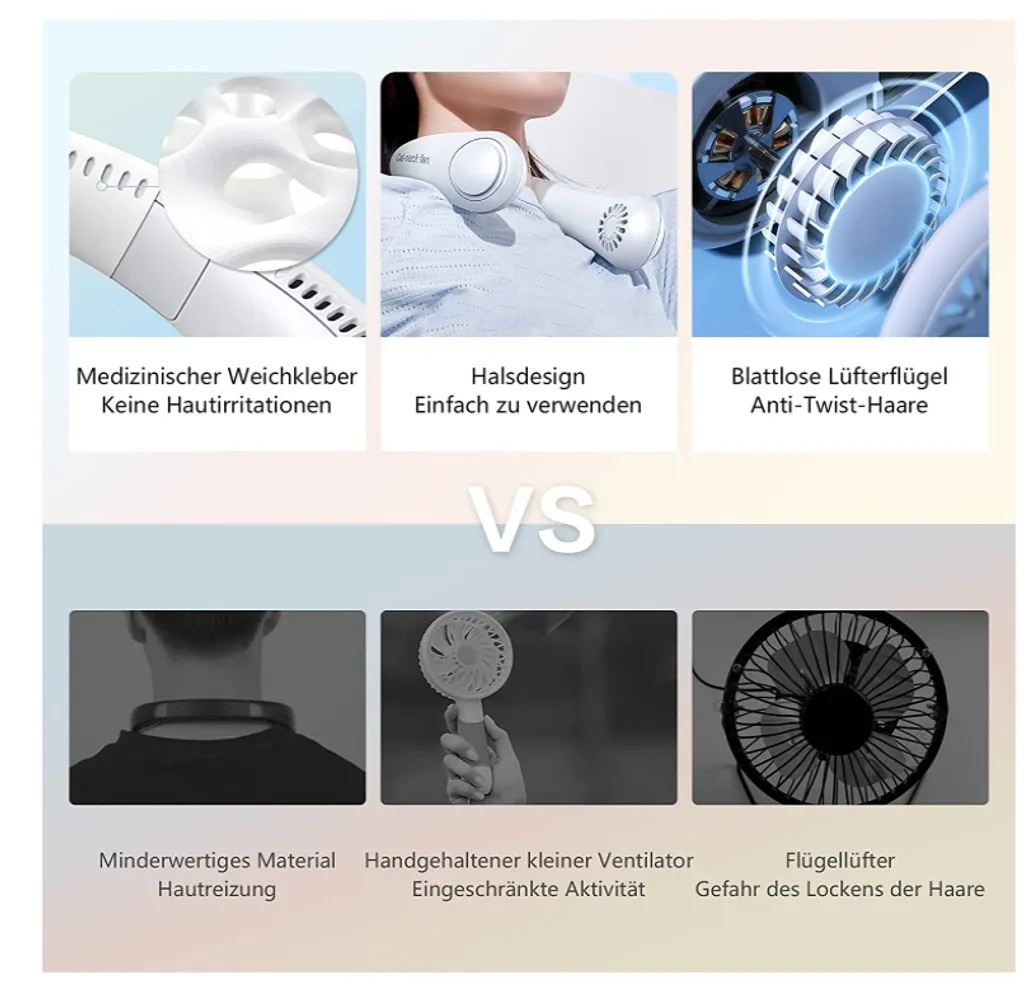 2000mAh Tragbarer Lüfter Nackenbügel Klingenloser Hängender Halsventilator Lazy Neck Hanging Cooler 3-Speeds 360 Grad Verdrehung USB Wiederaufladbar,Weiß