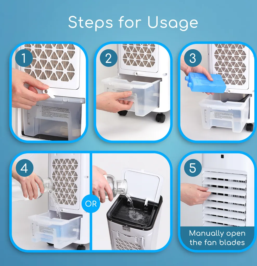 Aigostar 3,5L Mobiler Luftkühler 4-in-1 Mit 3 Stufen, LED Anzeige, Klima Ventilator Mit Fernbedienung, Mobiles Klimagerät Ohne Abluftschlauch Inkl. Timer & Oszillation Aircooler (Weiß/Schwarz)