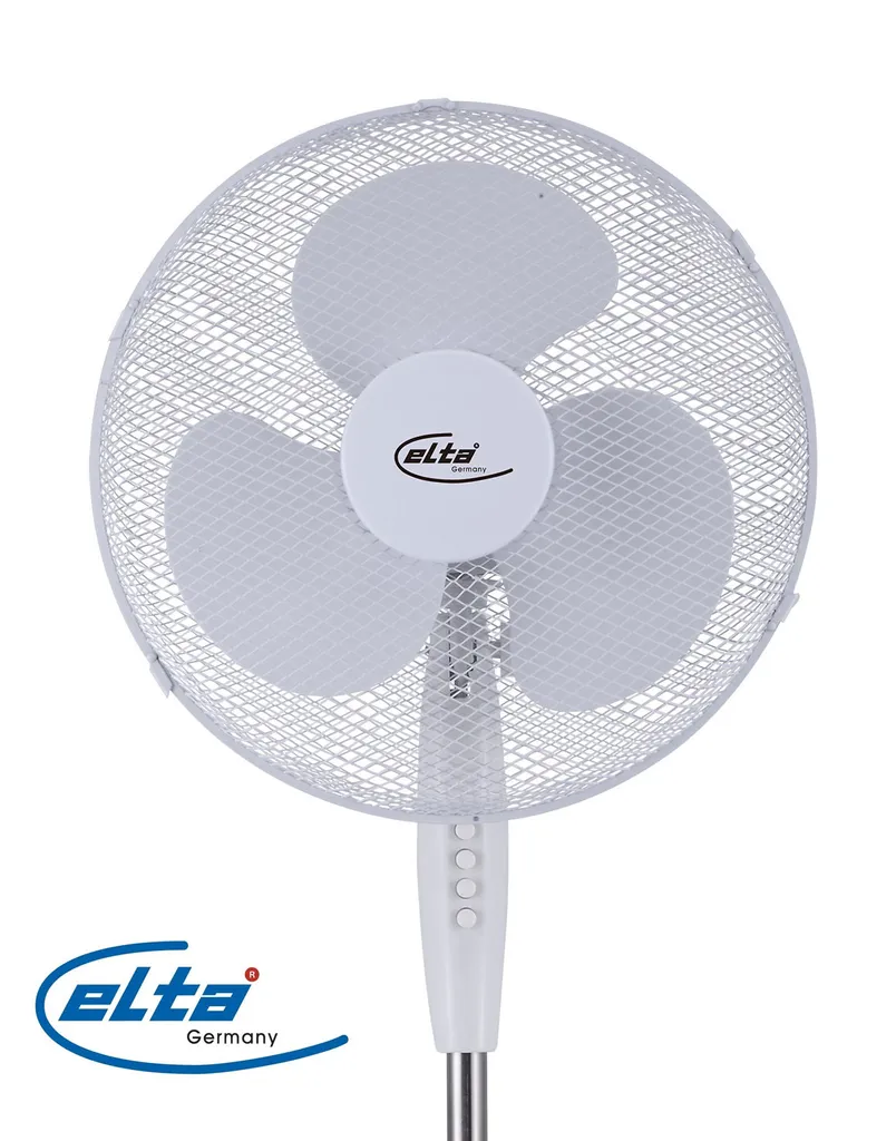 | Zusätzliche Varianten | Elta Stand-Ventilator (weiß) Ventilator 3 Geschwindigkeitsstufen höhenverstellbar, Elta Standventilator 45W weiß Ventilator Oszillation 122cm Lüfter Luftkühler |