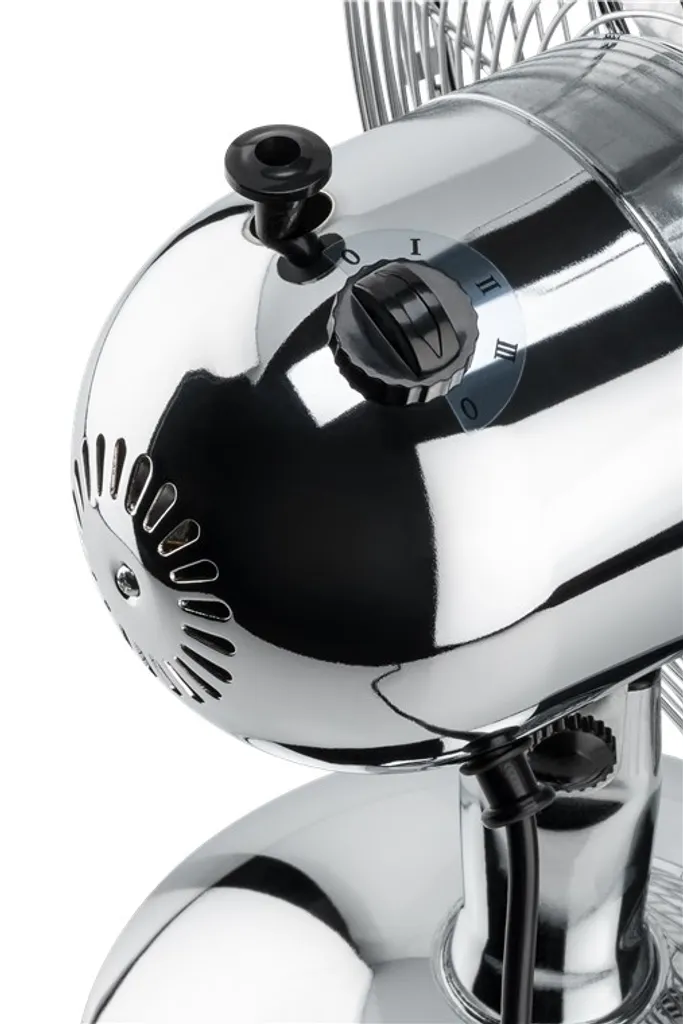 Goobay Retro Tischventilator Mit 3 Leistungsstufen, 40cm Durchmesser (12 Zoll) – Neigbar, Schwenkbar, Super Leise – Verchromt