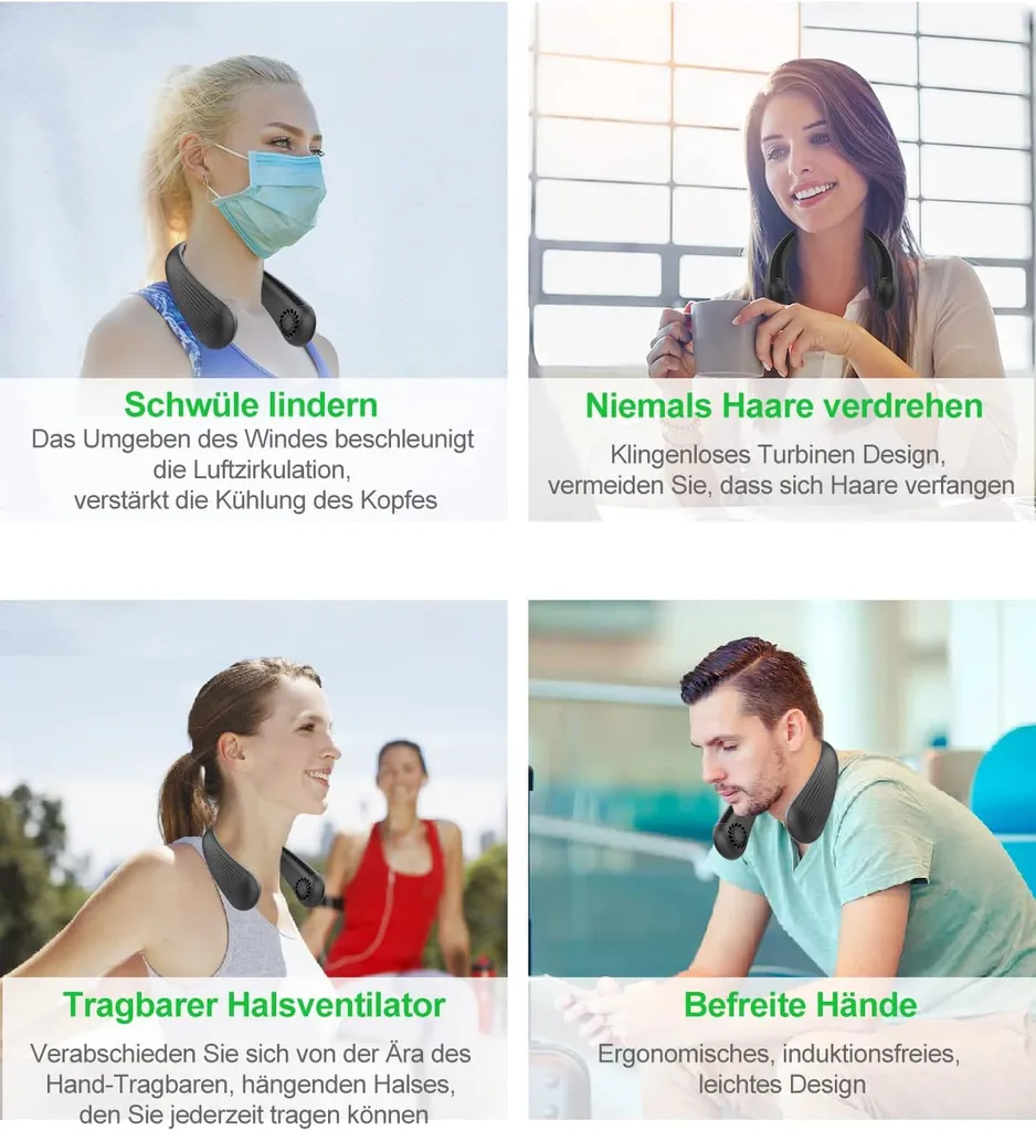 Nackenventilator Mini Ventilator USB Ventilator Nackenventilator 2000 MAh Fan 3 Stufen Halsventilator,Schwarz