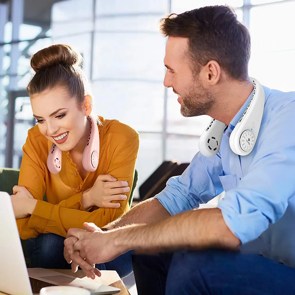 Tragbarer Halsventilator Klimaanlage, 360° Bladeless Kühlventilator Tragbar Nacken Klimaanlage Mit Kühlung Chip & LCD-Schirm, Wiederaufladbarer USB-Sportventilator Für Büro Turnhalle Strand